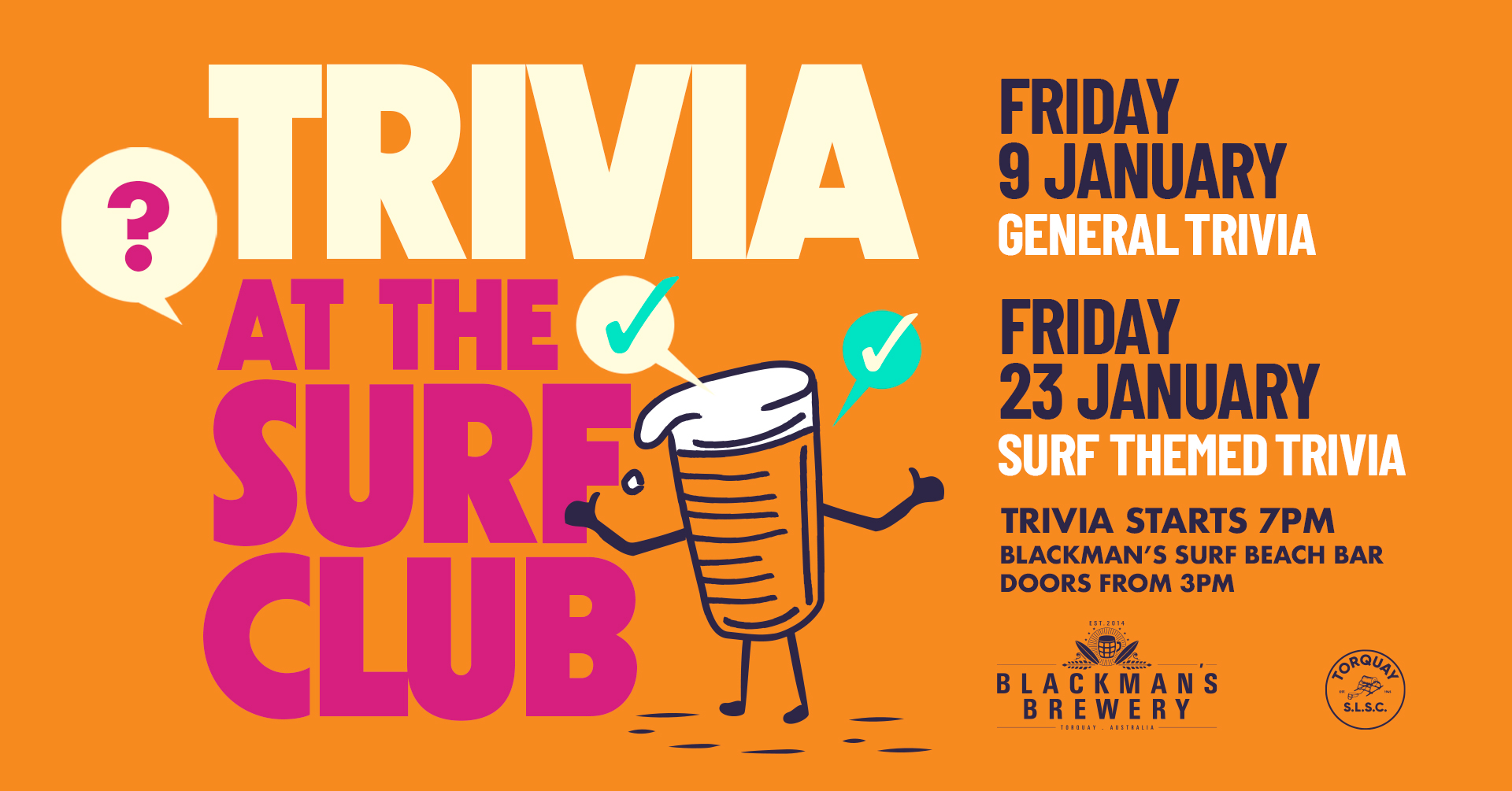 Gather your mates because we are bringing trivia to the ultimate summer location, none other than the Torquay Surf Life Saving Club!